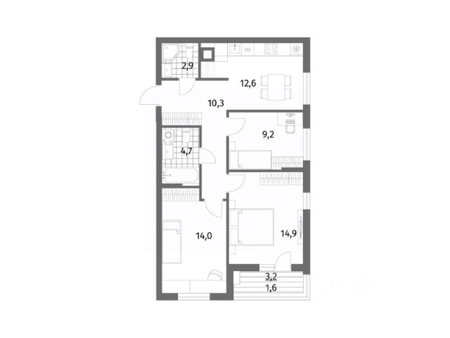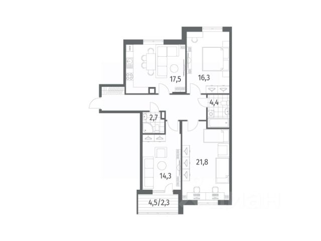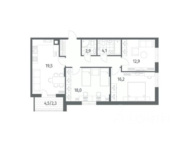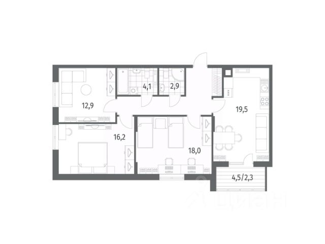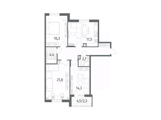 Квартира: 3 к 84,79 кв.м., 7 этаж в комплексе Включи, 4 очередь, корп.7, сдача: 1кв. , этажей: 7, адрес Гурьевск г., Героя России Катериничева ул., , Застройщик: ССК. Номер в базе: J31257L26552