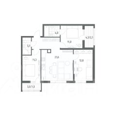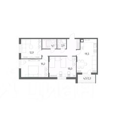 Продается квартира площадью 70.2 м² на 1 этаже 1 секции в River Park от компании ГК "ТРЕСТ". Площадь кухни 12.6 м².