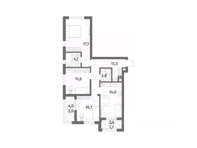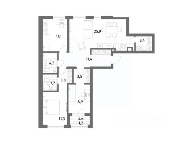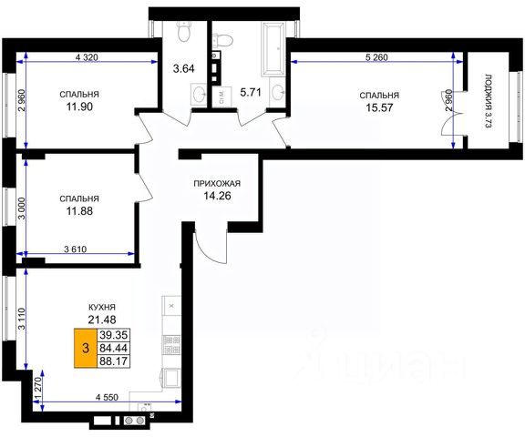 Продается 3-комн. квартира, площадью 86.31 м2. Возможен вариант покупки с использованием ипотечных средств. Жилая площадь 39.35 м2, кухня 21.48 кв. м, ремонта нет. Квартира располагается на 4 этаже 7-этажного монолитно-кирпичного дома, высота потолков 2.7 м. Дом оборудован пассажирским лифтом.