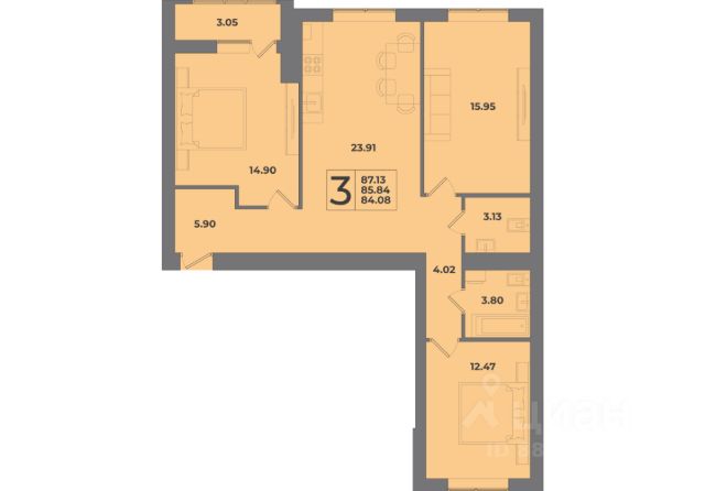 Продаётся 3-комнатная квартира в строящемся доме (Дом 8), срок сдачи: III-кв. 2026, общей площадью 87.13 кв.м., на 3 этаже. Жилой комплекс "Родина" представляет собой группу многоквартирных домов в Калининграде. В шаговой доступности от комплекса расположены детские сады, школа и поликлиника.