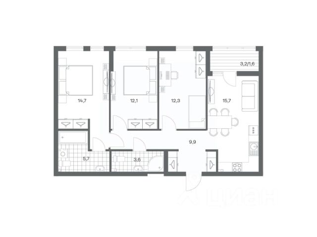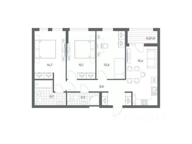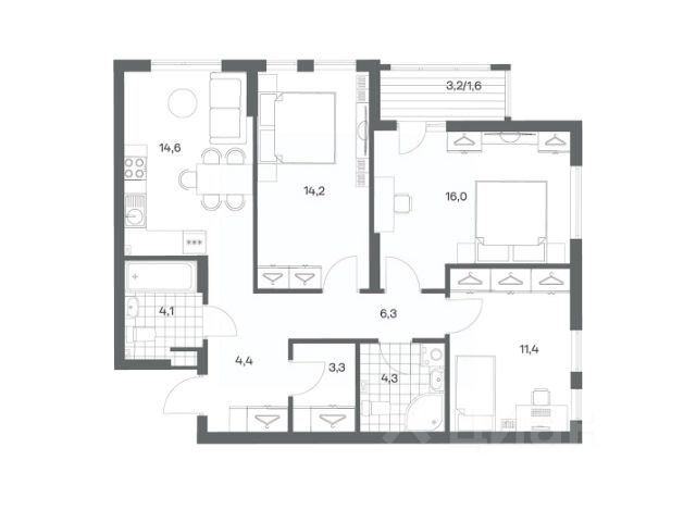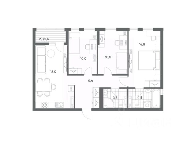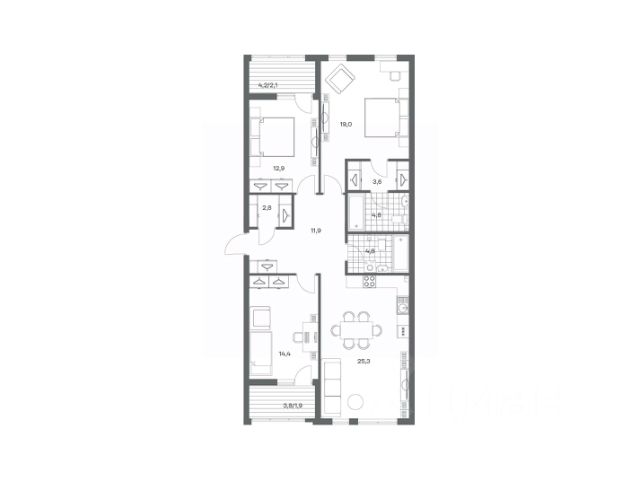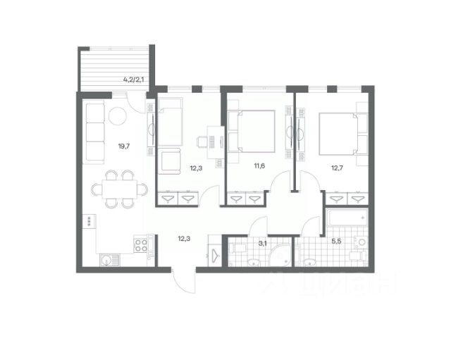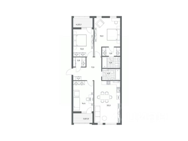 Продается квартира площадью 102.9 м² на 4 этаже 3 секции в Гагарина 30 от компании ГК "ТРЕСТ". Площадь кухни 25 м². Жилой комплекс комфорт-класса "Гагарина 30" расположен в Ленинградском районе Калининграда на улице Юрия Гагарина. Жилой комплекс включает в себя три корпуса высотой 9-18 этажей. Срок сдачи намечен на 1 квартал 2028 года. Жилой комплекс расположен в географическом центре города Калининград. Он знаменит Музеем янтаря, Королевскими воротами, Верхним и Нижним прудами, районами Альтштадт и Лебенихт. Из жилого квартала за 10 минут можно добраться до парков Тихий и Кальтхёфер. В жилом комплексе 457 квартир, из них 55% двух- и трёхкомнатные. Доступны варианты с просторными кухнями-гостиными, мастер-спальнями и кладовыми. На первых этажах расположены квартиры с приватными открытыми террасами. На верхних этажах лоджии с холодным остеклением, панорамными и увеличенными окнами. Высота потолков первого и последнего этажей - 3 м (кроме первого корпуса), остальных 2,72 м. Интерьеры МОП-ов выполнены в минималистичном стиле с контрастными, дополняющими друг друга материалами. Благодаря использованию светлых оттенков, природных текстур и декоративного освещения, пространство имеет большое количество света. В лифт-холле предусмотрена зона ожидания с мягкой мебелью. Почтовые ящики вынесены в тамбур, а рядом со стойкой домофона предусмотрена консоль для сумок. Дизайн-проект разработан студией Right design. Для удобства автомобилистов созданы подземные паркинги: на 125 машиномест и кладовые помещения. В паркинг можно будет спуститься на лифте комфортно людям, безопасно автомобилям!