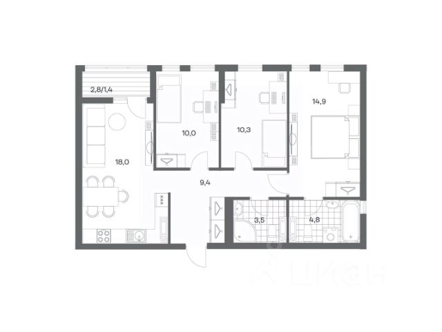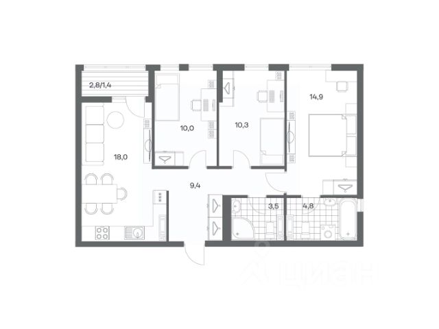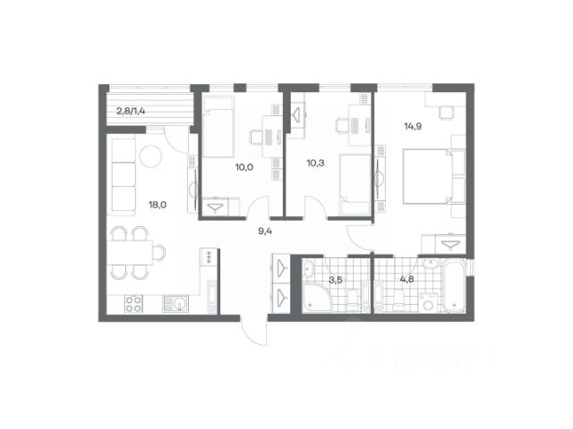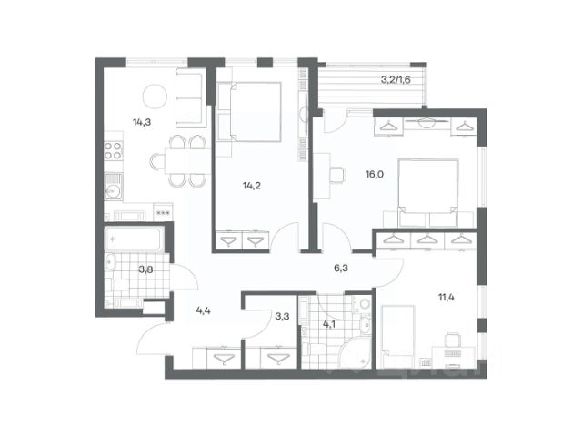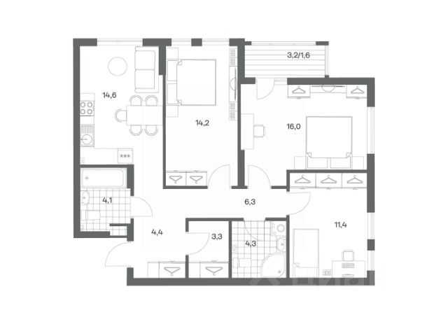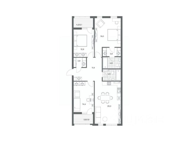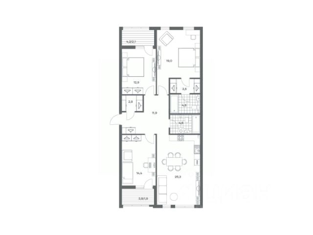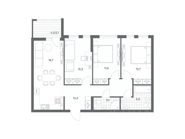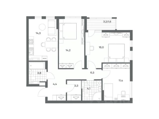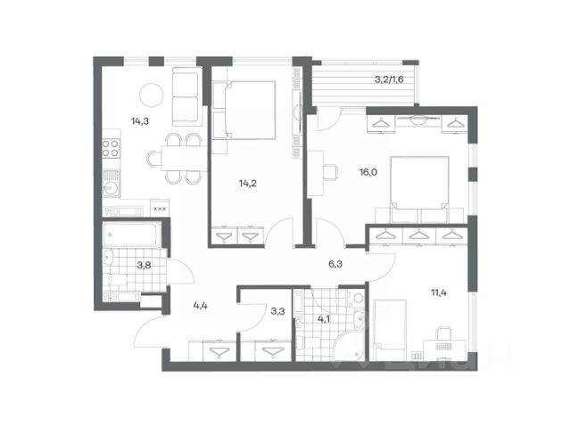 Продается квартира площадью 75 м² на 8 этаже 4 секции в Гагарина 30 от компании ГК "ТРЕСТ". Площадь кухни 15.4 м². Жилой комплекс комфорт-класса "Гагарина 30" расположен в Ленинградском районе Калининграда на улице Юрия Гагарина. Жилой комплекс включает в себя три корпуса высотой 9-18 этажей. Срок сдачи намечен на 1 квартал 2028 года. Жилой комплекс расположен в географическом центре города Калининград. Он знаменит Музеем янтаря, Королевскими воротами, Верхним и Нижним прудами, районами Альтштадт и Лебенихт. Из жилого квартала за 10 минут можно добраться до парков Тихий и Кальтхёфер. В жилом комплексе 457 квартир, из них 55% двух- и трёхкомнатные. Доступны варианты с просторными кухнями-гостиными, мастер-спальнями и кладовыми. На первых этажах расположены квартиры с приватными открытыми террасами. На верхних этажах лоджии с холодным остеклением, панорамными и увеличенными окнами. Высота потолков первого и последнего этажей - 3 м (кроме первого корпуса), остальных 2,72 м. Интерьеры МОП-ов выполнены в минималистичном стиле с контрастными, дополняющими друг друга материалами. Благодаря использованию светлых оттенков, природных текстур и декоративного освещения, пространство имеет большое количество света. В лифт-холле предусмотрена зона ожидания с мягкой мебелью. Почтовые ящики вынесены в тамбур, а рядом со стойкой домофона предусмотрена консоль для сумок. Дизайн-проект разработан студией Right design. Для удобства автомобилистов созданы подземные паркинги: на 125 машиномест и кладовые помещения. В паркинг можно будет спуститься на лифте комфортно людям, безопасно автомобилям!