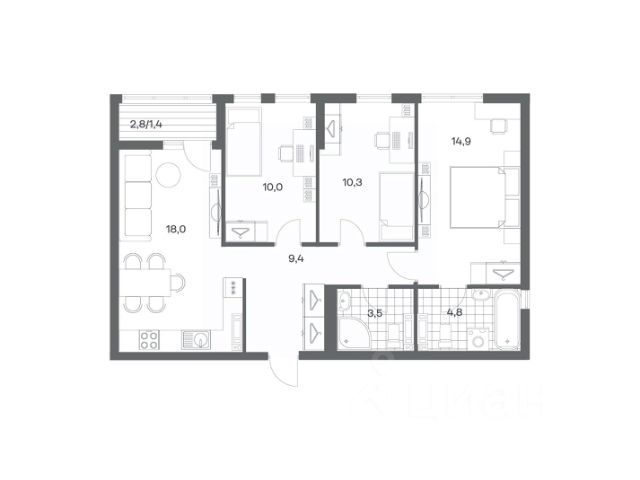 • ✓ В базе Циан 465 3-комнатных квартир без ремонта в Калининграде