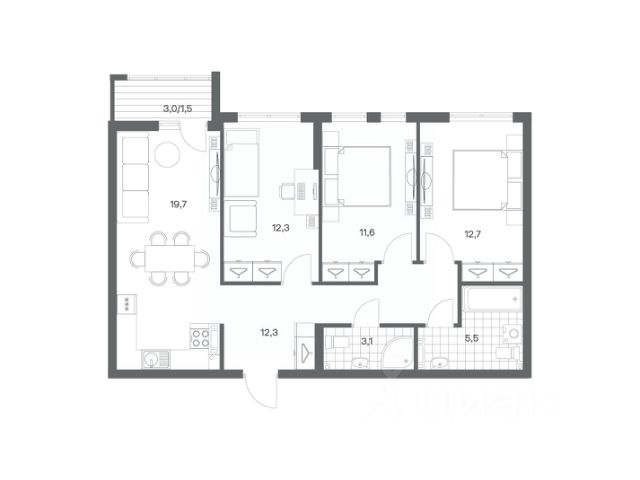 Продается 3-комн. квартира от застройщика с предчистовой отделкой в ЖК "Сиреневый бульвар" на 3 этаже. Общая площадь: 73.6 кв.м., жилая: 35 кв.м., площадь просторной кухни-столовой: 16.3 кв.м. Комнаты изолированные, все окна выходят на одну сторону. В квартире один балкон, один совмещенный и один раздельный санузел. Высота потолков 2.7 м. Дом монолитный, многоподъездный, высотой 4 этажа. Квартира находится в 8-й секции в корпусе 2.1. На этаже 3 квартиры. В подъезде 1 грузовой лифт. Окончание строительства - 3 квартал 2027 года. Оформление сделки по договору долевого участия. Жилой комплекс "Сиреневый бульвар" это 5 клубных 4-х этажных домов на 16 квартир и 9 домов с несколькими секциями. Вместе эти дома формируют собственное закрытое пространство с дворовыми территориями, спортивными и детскими площадками, местами отдыха и коммерческими помещениями. Дизайнерские входные группы и обилие зелени, удобные зоны отдыха всё устроено с особым вниманием. Жителей комплекса ждут просторные квартиры комфорт-класса с огромными террасами, мастер-спальнями, гардеробными и кухнями-гостиными. В каждом доме предусмотрены места для хранения велосипедов, кладовые помещения на цокольных этажах. "Сиреневый Бульвар" позволит своим жителям получить все преимущества городского комфорта и максимум плюсов от жизни на природе. Для жителей и гостей предусмотрены парковочные места, вся территория оборудована круглосуточной системой видеонаблюдения. В шаговой доступности находятся детский сад, начальная школа и продовольственные магазины. Жилой Комплекс "Сиреневый Бульвар" - уникальный проект, расположенный в Калининграде - балтийской жемчужине, в городе с богатым прошлым, комфортным настоящим и радужным будущим. Именно Калининград место встречи России и Европы. Жилой Комплекс "Сиреневый Бульвар" находится в географическом центре города. Ленинградский район (бывшие Ротенштейн, Марауненхоф, Лип, Девау, Палве и Куммерау) это северная часть Калининграда, где в довоенные годы располагался Старый город. Жилой комплекс находится рядом с Верхним озером, Нижним прудом и ещё 12 городскими водоемами. Территория всего проекта занимает 21,9 гектаров и находится между улицами Арсенальная, Пехотная и 4-ой Большой окружной. Аккредитация в банках: ПАО Банк "ВТБ", ПАО "Газпромбанк", "Сбербанк России", ПАО Банк "ФК Открытие", ПАО "Промсвязьбанк". #zMFsOz 3-комнатная квартира с большой кухней-гостиной в Калининграде.