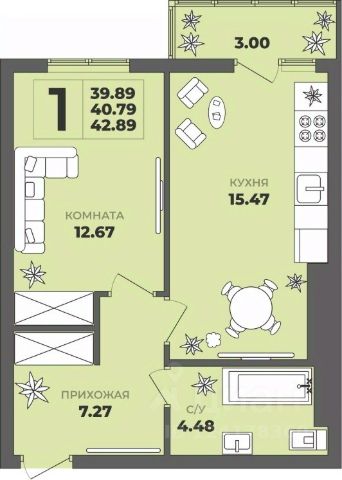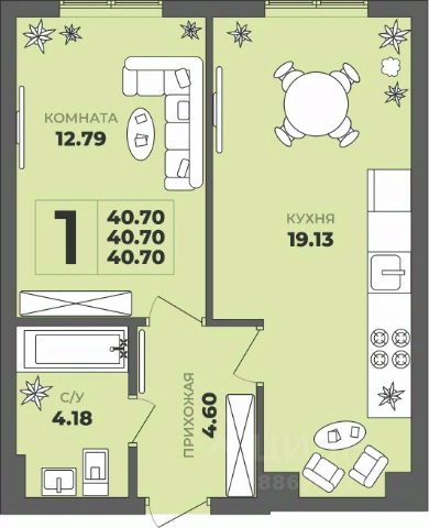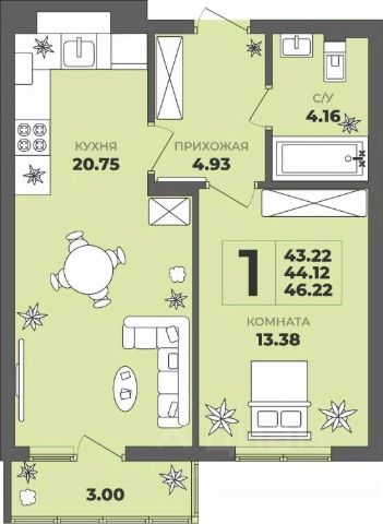 Продаётся 1-комнaтнaя квартира нa ул. Тбилисская 5 в жилом комплексе "Оливия" 2024 года постройки в Московском районе города Калининграда.