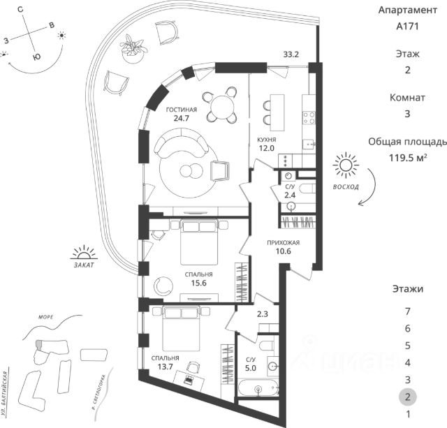ГОТОВЫЕ АПАРТАМЕНТЫ В СВЕТЛОГОРСКЕ Прямая продажа от надежного застройщика СК "МПК" Дом сдан! "Лазурь" элегантный и современный апарт-отель с оригинальным, запоминающимся дизайном, в абсолютной гармонии с окружающей архитектурой старинного курорта. Его спокойные и благородные цвета создают атмосферу уюта и изысканности. Вместе с тем "Лазурь" это, пожалуй, лучшие апартаменты для инвестиций в уникальной локации, подобных которой в центре города в настоящее время нет, а может быть уже и не будет со всей необходимой для жизни инфраструктурой в изобилии вокруг. Эти преимущества естественным образом повышают и его востребованность в качестве объекта для инвестиций увеличивают цену аренды, позволяя инвесторам получать более высокий арендный доход. Апартаменты оформляются в собственность, которой инвестор распоряжается на свое усмотрение. "Лазурь" предлагает большую вариативность форматов апартаментов, что отвечает любым запросам современного рынка. Все преимущества апарт-отеля "Лазурь": • Безопасность: видеонаблюдение, контроль доступа на территорию. • Благоустройство: двор с детскими площадками, зонами отдыха, зеленая зона - сосны, кустарники и цветники. • Планировки: функциональные и продуманные, отвечающие самым современным требованиям комфорта. • Виды из окон: на город, уютный благоустроенный двор и вековые сосны. •Собственный подземный паркинг даст вам возможность не переживать за сохранность автомобиля и подарит комфорт и безопастность. • Особая атмосфера курорта. Апарт-отель "Лазурь" находится в самом сердце Светлогорска, в окружении вековых сосен, в 5 минутах от морского берега. В наступающем сезоне главным фактором риска для отдыха на юге, безусловно, станут экологические проблемы после разлива мазута в Керченском проливе в конце прошлого года. Этот фактор определит новые потенциальные точки роста рынка за счет переадресации на калининградское направление потока туристов с черноморского побережья. Туристический поток в Калининградскую область по итогам 2024 года составил 2,3 млн человек, в 2025 году ожидается рост еще на 10-20% от этого показателя. Именно поэтому в калининградском аэропорту Храброво уже готовятся к приему "Джамбо Джетов" (самолётов большей вместимости) для летних полётов из Москвы и Петербурга. Поскольку комплекс апартаментов "Лазурь" уже сдан, это дает великолепный шанс заработать отличные деньги уже в этом сезоне, по прогнозам на который, загрузка в апарт-отелях составит до 95-100%. Не позволяйте отличной возможности ускользнуть от вас, пока цена на апартаменты в уже готовом комплексе "Лазурь" ниже, чем у близких по локации и качеству объектов. Больше подробностей вы можете узнать по телефону отдела продаж. Звоните! Продам 3-комнатную квартиру элитные в Светлогорске.