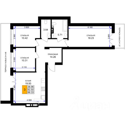 - Большая кухня-гостиная, идеальная для комфортного времяпрепровождения;