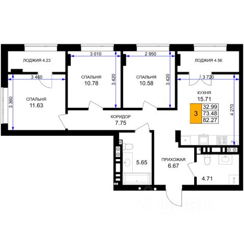• ✅ Минимальная площадь: 72,8 м²