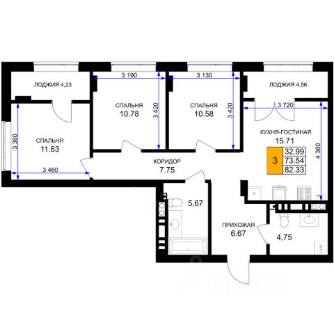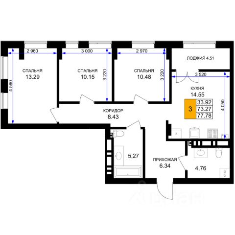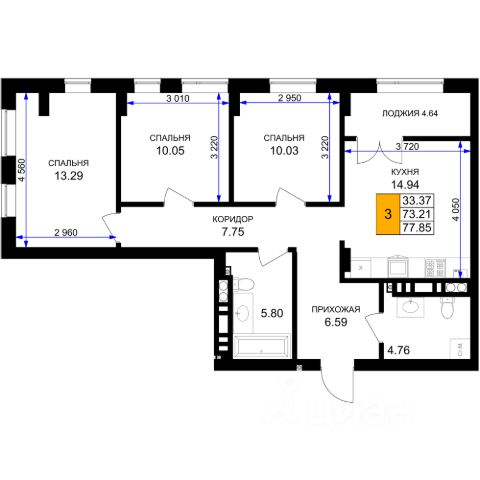 Трехкомнатная квартира — это просторное и светлое жилье, созданное для жизни без компромиссов. Три просторные изолированные комнаты позволяют каждому члену семьи иметь свое личное пространство: спальня, детская, кабинет или гостиная — все организуется легко и удобно. Благодаря увеличенному остеклению, интерьер наполняется естественным светом, визуально расширяется и создает ощущение легкости и открытости. Лоджия не только дополняет квартиру практичной зоной для хранения или отдыха.