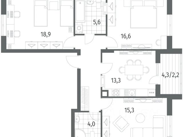 Продается квартира площадью 86.4 м² на 2 этаже 4 секции в River Park от компании ГК "ТРЕСТ". Площадь кухни 19.9 м².