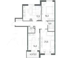 Продается квартира площадью 92.8 м² на 2 этаже 4 секции в River Park от компании ГК "ТРЕСТ". Площадь кухни 17.5 м².
