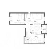 Продается квартира площадью 72.5 м² на 2 этаже 1 секции в River Park от компании ГК "ТРЕСТ". Площадь кухни 15.2 м².