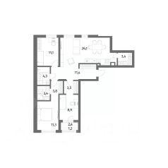 Квартира: 3 к 79,48 кв.м., 2 этаж в комплексе Включи, 5 очередь, корп.5, сдача: 1кв. , этажей: 7, адрес Гурьевск г., Героя России Катериничева ул., , Застройщик: ССК. Номер в базе: J31259L26705