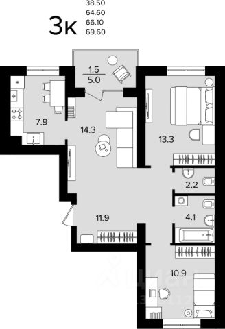 129 100 ₽/м²