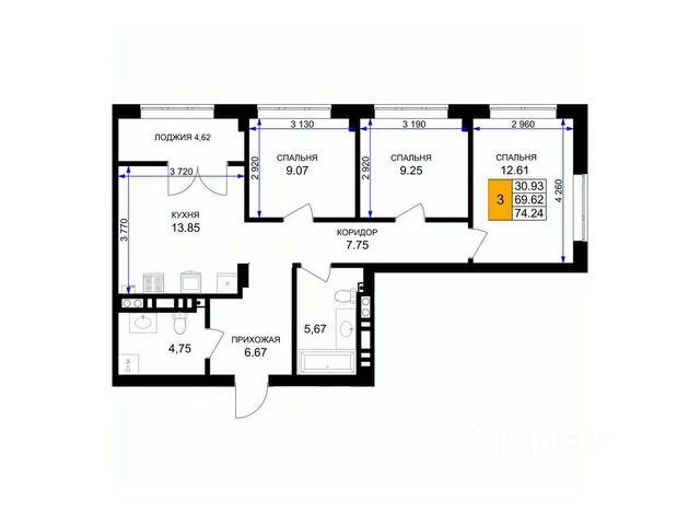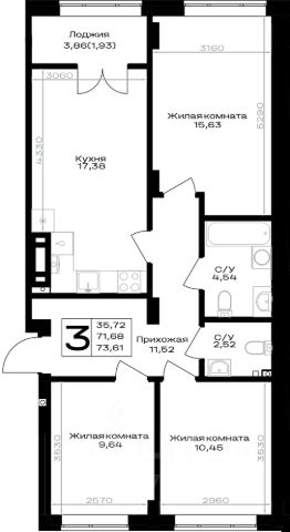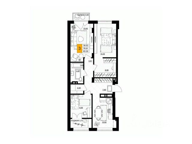 • 3 уровень: санузел, две изолированные спальни (одна с выходом на лоджию, вторая с верхним светом-антресолью)