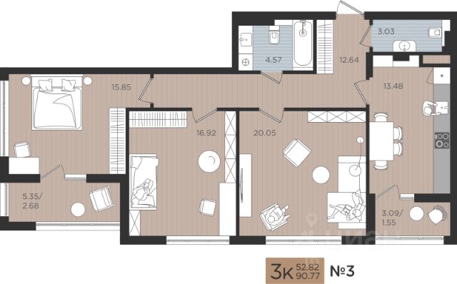 Продаётся 3-комнатная квартира в строящемся доме (Дом 4), срок сдачи: I-кв. 2027, общей площадью 90.77 кв.м., на 2 этаже. Новые жилые дома от Специализированного застройщика "Самолет Калининград Плюс" расположены в г. Калининград на ул. Советский проспект.