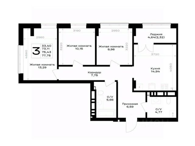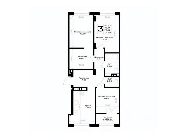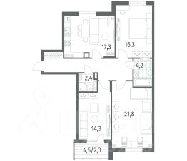 Квартира: 3 к 79,10 кв.м., 4 этаж в комплексе Включи, 1 очередь, корп.2, сдача: 4кв. , этажей: 7, адрес Гурьевск г., Героя России Катериничева ул., д. 2 корп 2, Застройщик: ССК.