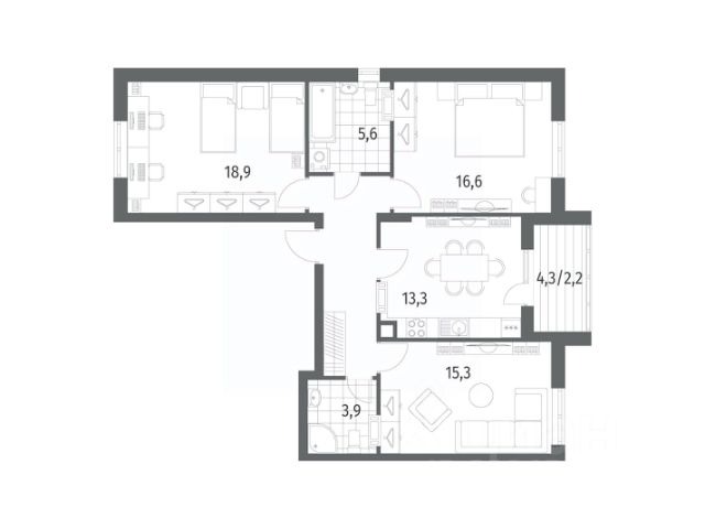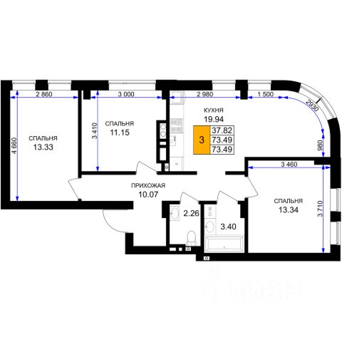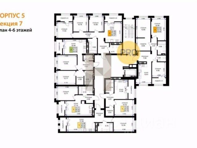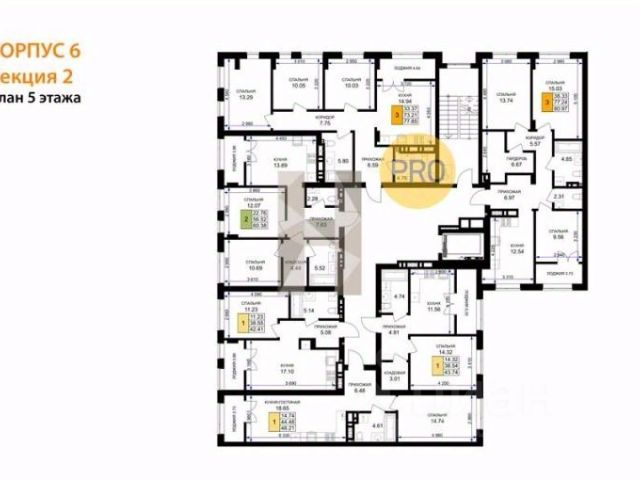 Квартира: 3 к 77,88 кв.м., 5 этаж в комплексе Включи, 1 очередь, корп.2, сдача: 4кв. , этажей: 7, адрес Гурьевск г., Героя России Катериничева ул., д. 2 корп 2, Застройщик: ССК.