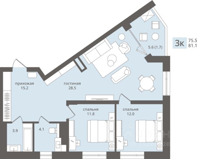 + Окна на две стороны(восток и запад), всегда очень много воздуха и света!