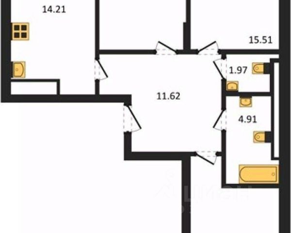 Квартира расположена на шестом этаже девятиэтажного кирпичного дома. Общая площадь составляет 72 кв. м
