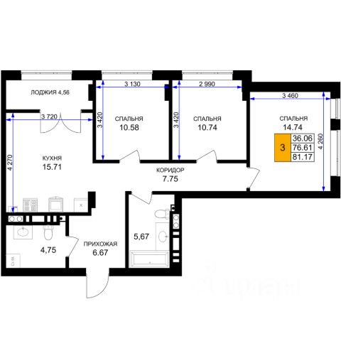 Трехкомнатная квартира — это просторное и светлое жилье, созданное для жизни без компромиссов. Три просторные изолированные комнаты позволяют каждому члену семьи иметь свое личное пространство: спальня, детская, кабинет или гостиная — все организуется легко и удобно. Благодаря увеличенному остеклению, интерьер наполняется естественным светом, визуально расширяется и создает ощущение легкости и открытости. Лоджия не только дополняет квартиру практичной зоной для хранения или отдыха.