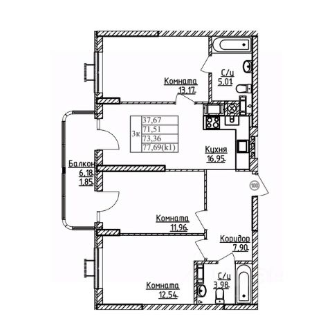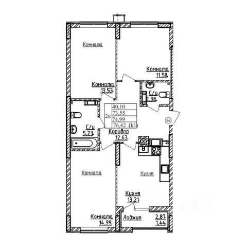 • ✅ Минимальная площадь: 73,4 м²