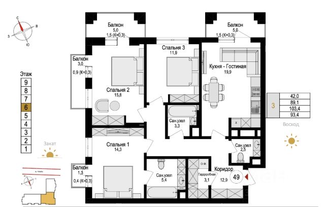 Продаётся 3-комнатная квартира в строящемся доме (Дом 2.1 очередь 1), срок сдачи: IV-кв. 2026, общей площадью 84.27 кв.м., на 6 этаже. Жилой квартал "Невский парк" - один из самых зеленых жилых кварталов Калининграда. Квартал, строящийся по принципу "город в городе" впечатляет своим масштабом и одновременно продуманностью всех деталей, как самого комплекса в целом, так и отдельно стоящих домов, и квартир. Озеленению здесь, действительно уделено особое внимание, и название "Невский парк" говорит само за себя. Квартиры в этом жилом квартале выгодная инвестиция как в качество собственной жизни, так и в перспективе дальнейшей продажи. ЖК "Невский парк" - современные, качественные, красивые дома с архитектурной подсветкой и индивидуальными дизайнерскими решениями в зонах общего пользования, включая подъезды. Квартал строится надёжной компанией ЗАО КалининградСтройИнвест", с 29-летним опытом на строительном рынке. В эксплуатацию уже сданы первые дома квартала, в которые уже заселились счастливые собственники. Преимущества и основные характеристики жилого квартала: Удобное расположение: -10 минут до центра города -20 минут до аэропорта "Храброво" -30 минут до берега моря Жилье комфорт-класса, в котором предусмотрено всё для удобства и уюта проживания: умный домофон и видеонаблюдение для вашей безопасности; возможность установки кондиционеров и антенн без ущерба для фасада здания. Спорт и активный образ жизни в "Невском парке": -велодорожки на протяжении всего квартала; -велопарковка и зона обслуживания велосипедов с подкачкой колес в каждом доме; -площадки для различных видов спорта. Здесь всё продумано до мелочей: Развитая инфраструктура внутри квартала: -современные игровые площадки; -зона выгула собак; -закрытые колясочные и велосипедные помещения, доступные только для жителей; -санузлы в каждом доме для удобства жильцов. Особенные детали для уюта и комфорта проживания: -автономное отопление; -углубленные лоджии и французские балконы; -высококачественные двери индивидуального дизайна; -заниженные подоконники на высоте 700 мм; -цветной оконный профиль производства Германия и двухкамерные стеклопакеты; -двойной воздухообмен на кухне. Просторные красивые подъезды и общественные пространства внутри дома: -уникальный и эффектный дизайн; -доступная среда - входы без ступеней и проходные лифты; -алюминиевые входные группы с двойным магнитом; -бесшумные лифты с повышенным скоростным режимом; -энергоэффективное освещение, установленное на датчиках движения; -навигация и шумоизоляция лифтовых шахт. Воспользуйтесь возможностью жить в одном из самых интересных, безопасных, красивых и комфортабельных жилых комплексов Калининграда - в домах "Невский парк"! Сделайте ваш выбор в пользу высокого качества жизни. Сданные дома : + Безналичный расчет + Рассрочка на 2 года + Ипотека под готовое жилье + Материнский капитал + Военная ипотека Строящиеся дома : + Субсидированная ипотека (IT-ипотека и семейная ипотека) + Материнский капитал + Военная ипотека Не упуст