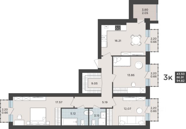Продаётся 3-комнатная квартира в строящемся доме (Дом 2 очередь 8), срок сдачи: IV-кв. 2026, общей площадью 84.94 кв.м., на 7 этаже. Жилой квартал "Невский парк" - один из самых зеленых жилых кварталов Калининграда. Квартал, строящийся по принципу "город в городе" впечатляет своим масштабом и одновременно продуманностью всех деталей, как самого комплекса в целом, так и отдельно стоящих домов, и квартир. Озеленению здесь, действительно уделено особое внимание, и название "Невский парк" говорит само за себя. Квартиры в этом жилом квартале выгодная инвестиция как в качество собственной жизни, так и в перспективе дальнейшей продажи. ЖК "Невский парк" - современные, качественные, красивые дома с архитектурной подсветкой и индивидуальными дизайнерскими решениями в зонах общего пользования, включая подъезды. Квартал строится надёжной компанией ЗАО КалининградСтройИнвест", с 29-летним опытом на строительном рынке. В эксплуатацию уже сданы первые дома квартала, в которые уже заселились счастливые собственники. Преимущества и основные характеристики жилого квартала: Удобное расположение: -10 минут до центра города -20 минут до аэропорта "Храброво" -30 минут до берега моря Жилье комфорт-класса, в котором предусмотрено всё для удобства и уюта проживания: умный домофон и видеонаблюдение для вашей безопасности; возможность установки кондиционеров и антенн без ущерба для фасада здания. Спорт и активный образ жизни в "Невском парке": -велодорожки на протяжении всего квартала; -велопарковка и зона обслуживания велосипедов с подкачкой колес в каждом доме; -площадки для различных видов спорта. Здесь всё продумано до мелочей: Развитая инфраструктура внутри квартала: -современные игровые площадки; -зона выгула собак; -закрытые колясочные и велосипедные помещения, доступные только для жителей; -санузлы в каждом доме для удобства жильцов. Особенные детали для уюта и комфорта проживания: -автономное отопление; -углубленные лоджии и французские балконы; -высококачественные двери индивидуального дизайна; -заниженные подоконники на высоте 700 мм; -цветной оконный профиль производства Германия и двухкамерные стеклопакеты; -двойной воздухообмен на кухне. Просторные красивые подъезды и общественные пространства внутри дома: -уникальный и эффектный дизайн; -доступная среда - входы без ступеней и проходные лифты; -алюминиевые входные группы с двойным магнитом; -бесшумные лифты с повышенным скоростным режимом; -энергоэффективное освещение, установленное на датчиках движения; -навигация и шумоизоляция лифтовых шахт. Воспользуйтесь возможностью жить в одном из самых интересных, безопасных, красивых и комфортабельных жилых комплексов Калининграда - в домах "Невский парк"! Сделайте ваш выбор в пользу высокого качества жизни. Сданные дома : + Безналичный расчет + Рассрочка на 2 года + Ипотека под готовое жилье + Материнский капитал + Военная ипотека Строящиеся дома : + Субсидированная ипотека (IT-ипотека и семейная ипотека) + Материнский капитал + Военная ипотека Не упустит