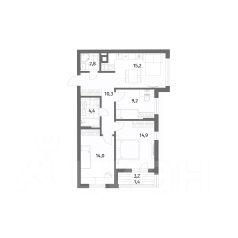 Квартира площадью 71 кв. м расположена на 7 этаже современного кирпично-монолитного дома, построенного в 2024 году по улице Фабричная 4А г.Гурьевска.