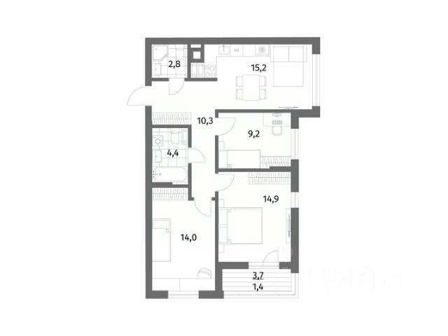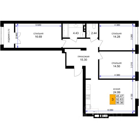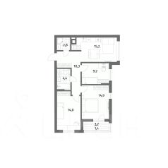 Квартира площадью 71 кв. м расположена на 7 этаже современного кирпично-монолитного дома, построенного в 2024 году по улице Фабричная 4А г.Гурьевска.