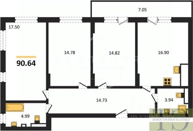 Квартира: 3 к 91,80 кв.м., 1 этаж в комплексе Аэро, 1 очередь, корп.A, сдача: 3кв. , этажей: 7, адрес Малое Исаково п., Первая ул., д. 1 корп 1, Застройщик: ГК Расцвет.