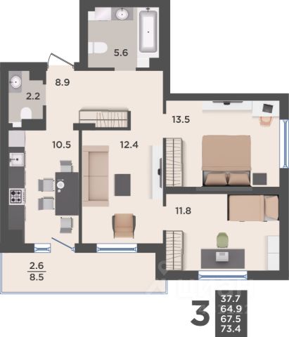Квартира 121. Добро пожаловать в жилой комплекс "Васильки" — оазис комфорта и современности, где каждая деталь заботливо продумана для вашего удобства и уюта. Комплекс расположен на улице Большая Окружная, обеспечивая вам легкий доступ ко всем направлениям благодаря превосходному транспортному расположению. 5 минут до центра города, 20 минут до моря. По-настоящему развитая инфраструктура. Всё, что нужно для комфортной жизни. ЖК "Васильки" окружен всем необходимым для вашей семьи: два новых детских сада и школа находятся в шаговой доступности, а "Школа будущего" всего в 5 минутах езды на машине. В этом жилом комплексе вам понравится: - авторская архитектура; - дизайнерское оформление входных групп и мест общего пользования, - автономное отопление; - двор "без машин" и благоустройство территории; - передовые технологии пожарной безопасности и видеонаблюдения, умный домофон "Спутник" с мобильным приложением. - наличие подземного паркинга и кладовых сделает вашу жизнь еще более комфортной и безопасной. Эргономичные и продуманные планировки с просторными кухнями-гостиными и гардеробными, системами хранения, мастер-спальнями. Квартира полностью подготовлена к финишной отделке: - стяжка пола под напольное покрытие; - высокое качество штукатурки стен под покраску или поклейку обоев, - входная дверь высокого класса, - автономное отопление с установкой котла и радиаторов. - система электропроводки, выключатели и розетки. Чистовая отделка от КСК. Включите стоимость ремонта в ипотечный кредит, выплачивайте удобными платежами и получите готовую квартиру для жизни при выдаче ключей. В каждом подъезде предусмотрены места для хранения велосипедов и колясочные, кладовые помещения на цокольных этажах. ОТ НАС - полное сопровождение сделки: помощь в подборе квартиры, оказание юридического сопровождения, а также самые выгодные условия ипотечного кредитования (реализация субсидий, мат. капитала, льготная ипотека с гос. поддержкой). Звоните, будем рады помочь осуществить Вашу мечту! Купить 3-комнатную квартиру в поселке Васильково Гурьевского муниципального округа.