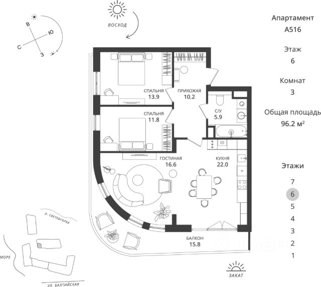 Продаётся 3-комнатная квартира в строящемся доме (Дом 2), срок сдачи: IV-кв. 2026, общей площадью 77.75 кв.м., на 2 этаже. Многоквартирный жилой дом комфорт-класса "Шелест" расположен в Светлогорске на улице Песочная в окружении высоких сосен является настоящим уголком отдыха от городской суеты и шума. Дом состоит их пяти секций с переменной этажностью: 1 - 4 секция 6 этажей, 5 секция 5 этажей Преимущества: - Эксплуатируемая кровля с зонами для отдыха с лежаками - Уникальный дизайн - проект мест общего пользования - Комфортные планировки - Лоджии и балконы с панорамным остеклением - Входные двери высокого класса безопасности - Кладовые помещения, велосипедные и колясочные и санузлы - Видеонаблюдение по всей территории - Архитектурная подсветка фасадов Выбирайте комфортное жилье в жилом доме "Шелест"! Приобретайте квартиры напрямую от надежного застройщика "КалининградСтройИнвест" - 29 лет строим для Вас! Продам 3-комнатную квартиру в Светлогорске.