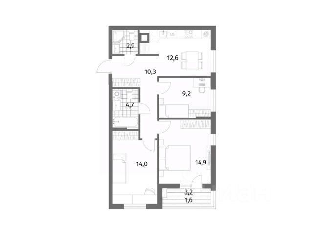 Продается квартира площадью 70.2 м² на 1 этаже 1 секции в River Park от компании ГК "ТРЕСТ". Площадь кухни 12.6 м².