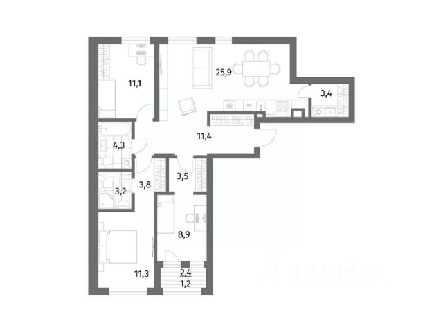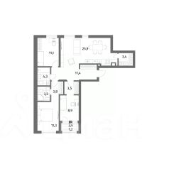 Продается квартира площадью 88 м² на 6 этаже 1 секции в River Park от компании ГК "ТРЕСТ". Площадь кухни 25.9 м².