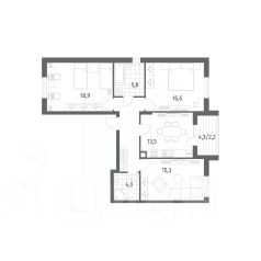 Продается квартира площадью 73.5 м² на 1 этаже 1 секции в River Park от компании ГК "ТРЕСТ". Площадь кухни 20.1 м².