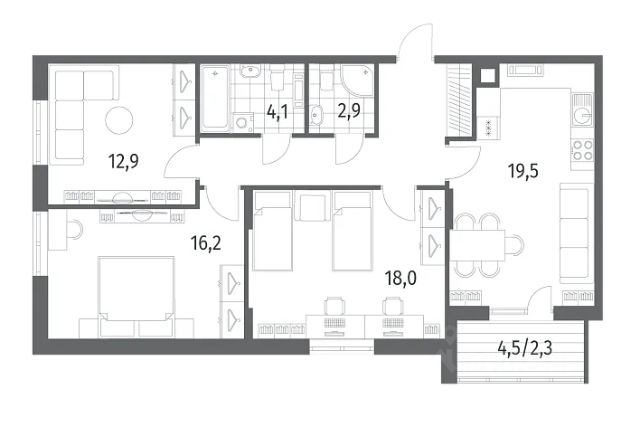Продается трехкомнатная квартира от застройщика с предчистовой отделкой в ЖК "Сиреневый бульвар" на 2 этаже. Общая площадь: 79.5 кв.м., жилая: 46.1 кв.м., площадь просторной кухни-столовой: 12.3 кв.м. Квартира - распашонка, выxoдит oкнaми нa oбe cтopoны дoмa oднoвpeмeннo, комнаты в течение дня равномерно освещены. В квартире одна лоджия, один совмещенный и один раздельный санузел. Высота потолков 2.7 м. Дом монолитный, многоподъездный, высотой 4 этажа. Квартира находится в 3-й секции в корпусе 5.1. На этаже 4 квартиры. В подъезде 1 грузовой лифт. Окончание строительства - 4 квартал 2025 года. Оформление сделки по договору долевого участия. Жилой комплекс "Сиреневый бульвар" это 5 клубных 4-х этажных домов на 16 квартир и 9 домов с несколькими секциями. Вместе эти дома формируют собственное закрытое пространство с дворовыми территориями, спортивными и детскими площадками, местами отдыха и коммерческими помещениями. Дизайнерские входные группы и небольшие приусадебные участки квартир нижних этажей, обилие зелени, удобные зоны отдыха всё устроено с особым вниманием. Жителей комплекса ждут просторные квартиры комфорт-класса с огромными террасами, мастер-спальнями, гардеробными и кухнями-гостиными. В каждом доме предусмотрены места для хранения велосипедов, кладовые помещения на цокольных этажах. "Сиреневый Бульвар" позволит своим жителям получить все преимущества городского комфорта и максимум плюсов от жизни на природе. Для жителей и гостей предусмотрены парковочные места, вся территория оборудована круглосуточной системой видеонаблюдения. В шаговой доступности находятся детский сад, начальная школа и продовольственные магазины. Жилой Комплекс "Сиреневый Бульвар" - уникальный проект, расположенный в Калининграде - балтийской жемчужине, в городе с богатым прошлым, комфортным настоящим и радужным будущим. Именно Калининград место встречи России и Европы. Жилой Комплекс "Сиреневый Бульвар" находится в географическом центре города. Ленинградский район (бывшие Ротенштейн, Марауненхоф, Лип, Девау, Палве и Куммерау) это северная часть Калининграда, где в довоенные годы располагался Старый город. Жилой комплекс находится рядом с Верхним озером, Нижним прудом и ещё 12 городскими водоемами. Территория всего проекта занимает 21,9 гектаров и находится между улицами Арсенальная, Пехотная и 4-ой Большой окружной. Аккредитация в банках: ПАО "Газпромбанк", "Сбербанк России", ПАО Банк "ВТБ", ПАО "Промсвязьбанк", ПАО Банк "ФК Открытие". #ZM2wZ5