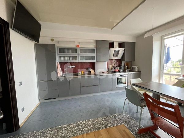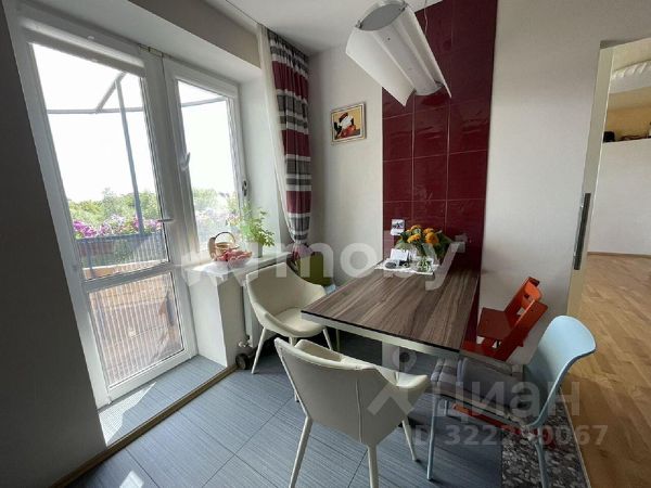 - В кухне-гостиной панорамные окна, выход на большую лоджию 5.9 м2 с панорамным остеклением.