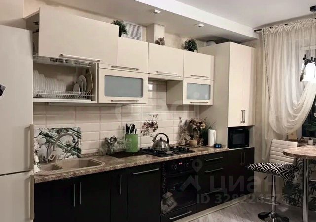в квартире остается: кухонный гарнитур, холодильник, посудомоечная, стиральная и сушильная машинки и мелкая бытовая техника.