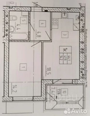 • Просторные комнаты (18,3 м² и 15,9 м²)
