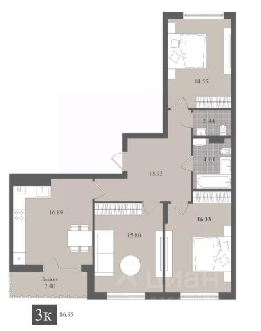 • Спальни: Две огромные комнаты (18,9 и 23,7 м²) + холл (13,1 м²) + кабинет (3 м²) под удаленную работу.