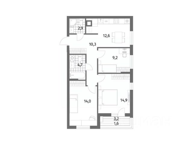 Продается квартира площадью 70.2 м² на 1 этаже 1 секции в Ривер парк от компании ГК "ТРЕСТ". Площадь кухни 12.6 м².