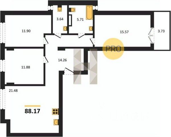 Продается квартира площадью 88 м² на 6 этаже 1 секции в River Park от компании ГК "ТРЕСТ". Площадь кухни 25.9 м².