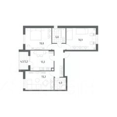 Продается квартира площадью 72.5 м² на 2 этаже 1 секции в River Park от компании ГК "ТРЕСТ". Площадь кухни 15.2 м².