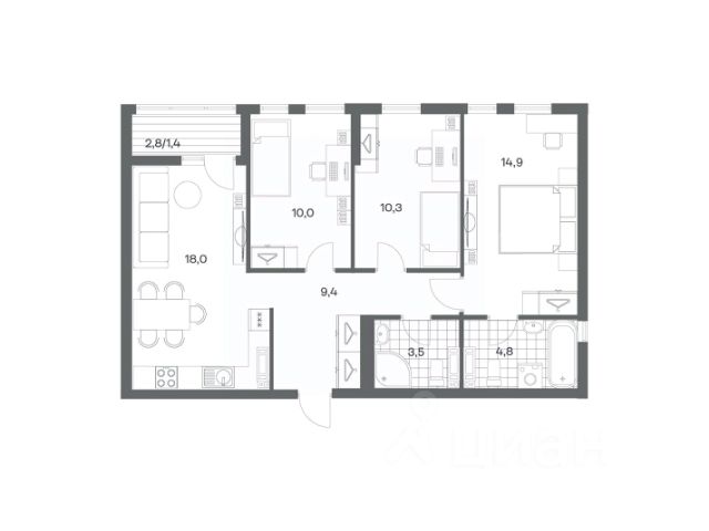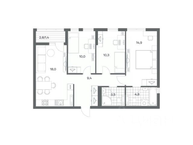 Продается 3-комн. квартира с предчистовой отделкой в ЖК "Сиреневый бульвар" на 2 этаже. Общая площадь: 98.7 кв.м., жилая: 39.6 кв.м., площадь просторной кухни-столовой: 21.4 кв.м. Угловая квартира, очень светлая, естественная вентиляция при открытии окон. В квартире два балкона и одна лоджия, один раздельный санузел. Терраса представляет собой роскошную зону отдыха для проведение вечеров в кругу семьи и друзей или организация вечеринок. Высота потолков 2.7 м. Дом введен в эксплуатацию. Дом монолитный, многоподъездный, высотой 4 этажа. Квартира находится в 9-й секции в корпусе 1.1. На этаже 4 квартиры. В подъезде 1 грузовой лифт. Начало строительства - 4 квартал 2022 года. В настоящее время строительство завершено, дом сдан в 1 квартале 2024 года. Оформление сделки по договору купли-продажи. Жилой комплекс "Сиреневый бульвар" это 5 клубных 4-х этажных домов на 16 квартир и 9 домов с несколькими секциями. Вместе эти дома формируют собственное закрытое пространство с дворовыми территориями, спортивными и детскими площадками, местами отдыха и коммерческими помещениями. Дизайнерские входные группы и небольшие приусадебные участки квартир нижних этажей, обилие зелени, удобные зоны отдыха всё устроено с особым вниманием. Жителей комплекса ждут просторные квартиры комфорт-класса с огромными террасами, мастер-спальнями, гардеробными и кухнями-гостиными. В каждом доме предусмотрены места для хранения велосипедов, кладовые помещения на цокольных этажах. "Сиреневый Бульвар" позволит своим жителям получить все преимущества городского комфорта и максимум плюсов от жизни на природе. Для жителей и гостей предусмотрены парковочные места, вся территория оборудована круглосуточной системой видеонаблюдения. В шаговой доступности находятся детский сад, начальная школа и продовольственные магазины. Жилой Комплекс "Сиреневый Бульвар" - уникальный проект, расположенный в Калининграде - балтийской жемчужине, в городе с богатым прошлым, комфортным настоящим и радужным будущим. Именно Калининград место встречи России и Европы. Жилой Комплекс "Сиреневый Бульвар" находится в географическом центре города. Ленинградский район (бывшие Ротенштейн, Марауненхоф, Лип, Девау, Палве и Куммерау) это северная часть Калининграда, где в довоенные годы располагался Старый город. Жилой комплекс находится рядом с Верхним озером, Нижним прудом и ещё 12 городскими водоемами. Территория всего проекта занимает 21,9 гектаров и находится между улицами Арсенальная, Пехотная и 4-ой Большой окружной. Аккредитация в банках: ПАО Банк "ВТБ", "Сбербанк России", ПАО "Газпромбанк", ПАО "Промсвязьбанк", ПАО Банк "ФК Открытие". #ZwucSV Продам 3-комнатную квартиру в жилом комплексе с кухней гостиной в Калининграде.