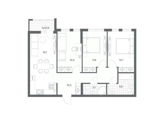 Продается 3-комн. квартира с предчистовой отделкой в ЖК "Сиреневый бульвар" на 2 этаже. Общая площадь: 98.7 кв.м., жилая: 39.6 кв.м., площадь просторной кухни-столовой: 21.4 кв.м. Угловая квартира, очень светлая, естественная вентиляция при открытии окон. В квартире два балкона и одна лоджия, один раздельный санузел. Терраса представляет собой роскошную зону отдыха для проведение вечеров в кругу семьи и друзей или организация вечеринок. Высота потолков 2.7 м. Дом введен в эксплуатацию. Дом монолитный, многоподъездный, высотой 4 этажа. Квартира находится в 9-й секции в корпусе 1.1. На этаже 4 квартиры. В подъезде 1 грузовой лифт. Начало строительства - 4 квартал 2022 года. В настоящее время строительство завершено, дом сдан в 1 квартале 2024 года. Оформление сделки по договору купли-продажи. Жилой комплекс "Сиреневый бульвар" это 5 клубных 4-х этажных домов на 16 квартир и 9 домов с несколькими секциями. Вместе эти дома формируют собственное закрытое пространство с дворовыми территориями, спортивными и детскими площадками, местами отдыха и коммерческими помещениями. Дизайнерские входные группы и небольшие приусадебные участки квартир нижних этажей, обилие зелени, удобные зоны отдыха всё устроено с особым вниманием. Жителей комплекса ждут просторные квартиры комфорт-класса с огромными террасами, мастер-спальнями, гардеробными и кухнями-гостиными. В каждом доме предусмотрены места для хранения велосипедов, кладовые помещения на цокольных этажах. "Сиреневый Бульвар" позволит своим жителям получить все преимущества городского комфорта и максимум плюсов от жизни на природе. Для жителей и гостей предусмотрены парковочные места, вся территория оборудована круглосуточной системой видеонаблюдения. В шаговой доступности находятся детский сад, начальная школа и продовольственные магазины. Жилой Комплекс "Сиреневый Бульвар" - уникальный проект, расположенный в Калининграде - балтийской жемчужине, в городе с богатым прошлым, комфортным настоящим и радужным будущим. Именно Калининград место встречи России и Европы. Жилой Комплекс "Сиреневый Бульвар" находится в географическом центре города. Ленинградский район (бывшие Ротенштейн, Марауненхоф, Лип, Девау, Палве и Куммерау) это северная часть Калининграда, где в довоенные годы располагался Старый город. Жилой комплекс находится рядом с Верхним озером, Нижним прудом и ещё 12 городскими водоемами. Территория всего проекта занимает 21,9 гектаров и находится между улицами Арсенальная, Пехотная и 4-ой Большой окружной. Аккредитация в банках: ПАО Банк "ВТБ", "Сбербанк России", ПАО "Газпромбанк", ПАО "Промсвязьбанк", ПАО Банк "ФК Открытие". #ZwucSV Продам 3-комнатную квартиру в жилом комплексе с кухней гостиной в Калининграде.