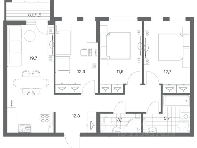 3-комн. квартира от застройщика с предчистовой отделкой в ЖК "Сиреневый бульвар" на 2 этаже. Общая площадь: 98.7 кв.м., жилая: 39.6 кв.м., площадь просторной кухни-столовой: 21.4 кв.м. Квартира угловая, очень светлая, естественная вентиляция при открытии окон. В квартире два балкона и одна лоджия, один раздельный санузел. Наличие террасы в квартире открывает возможность для обустройства дополнительной площади. Высота потолков 2.7 м. Дом введен в эксплуатацию. Дом монолитный, многоподъездный, высотой 4 этажа. Квартира находится в 9-й секции в корпусе 1.1. На этаже 4 квартиры. В подъезде 1 грузовой лифт. Начало строительства - 4 квартал 2022 года. На сегодняшний день строительство завершено, дом сдан в 1 квартале 2024 года. Оформление сделки по договору купли-продажи. Жилой комплекс "Сиреневый бульвар" это 5 клубных 4-х этажных домов на 16 квартир и 9 домов с несколькими секциями. Вместе эти дома формируют собственное закрытое пространство с дворовыми территориями, спортивными и детскими площадками, местами отдыха и коммерческими помещениями. Дизайнерские входные группы и небольшие приусадебные участки квартир нижних этажей, обилие зелени, удобные зоны отдыха всё устроено с особым вниманием. Жителей комплекса ждут просторные квартиры комфорт-класса с огромными террасами, мастер-спальнями, гардеробными и кухнями-гостиными. В каждом доме предусмотрены места для хранения велосипедов, кладовые помещения на цокольных этажах. "Сиреневый Бульвар" позволит своим жителям получить все преимущества городского комфорта и максимум плюсов от жизни на природе. Для жителей и гостей предусмотрены парковочные места, вся территория оборудована круглосуточной системой видеонаблюдения. В шаговой доступности находятся детский сад, начальная школа и продовольственные магазины. Жилой Комплекс "Сиреневый Бульвар" - уникальный проект, расположенный в Калининграде - балтийской жемчужине, в городе с богатым прошлым, комфортным настоящим и радужным будущим. Именно Калининград место встречи России и Европы. Жилой Комплекс "Сиреневый Бульвар" находится в географическом центре города. Ленинградский район (бывшие Ротенштейн, Марауненхоф, Лип, Девау, Палве и Куммерау) это северная часть Калининграда, где в довоенные годы располагался Старый город. Жилой комплекс находится рядом с Верхним озером, Нижним прудом и ещё 12 городскими водоемами. Территория всего проекта занимает 21,9 гектаров и находится между улицами Арсенальная, Пехотная и 4-ой Большой окружной. Аккредитация в банках: ПАО Банк "ВТБ", ПАО "Газпромбанк", "Сбербанк России", ПАО "Промсвязьбанк", ПАО Банк "ФК Открытие". #2wucsV Продам 3-комнатную квартиру в ипотеку в новостройке в Калининградской области.