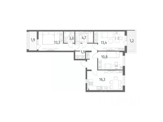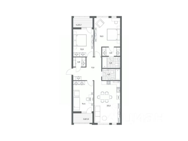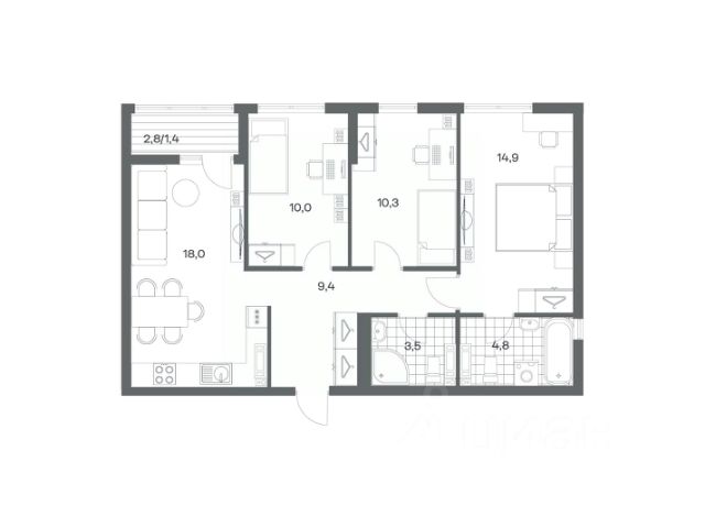 Трехкомнатная квартира с предчистовой отделкой в ЖК "Сиреневый бульвар" на 4 этаже. Общая площадь: 91.3 кв.м., жилая: 35.4 кв.м., площадь просторной кухни-столовой: 27.7 кв.м. Квартира угловая, идеально подойдет любителям тишины и панорамных видов. В квартире два балкона и одна лоджия, один совмещенный и один раздельный санузел. Высота потолков 2.7 м. Квартира находится в корпусе 5-2. Дом монолитный, одноподъездный, высотой 4 этажа. На этаже 4 квартиры. В подъезде 1 грузовой лифт. Строительство завершено, дом сдан в 4 квартале 2025 года. Оформление сделки по договору купли-продажи. Жилой комплекс "Сиреневый бульвар" это 5 клубных 4-х этажных домов на 16 квартир и 9 домов с несколькими секциями. Вместе эти дома формируют собственное закрытое пространство с дворовыми территориями, спортивными и детскими площадками, местами отдыха и коммерческими помещениями. Дизайнерские входные группы и обилие зелени, удобные зоны отдыха всё устроено с особым вниманием. Жителей комплекса ждут просторные квартиры комфорт-класса с огромными террасами, мастер-спальнями, гардеробными и кухнями-гостиными. В каждом доме предусмотрены места для хранения велосипедов, кладовые помещения на цокольных этажах. "Сиреневый Бульвар" позволит своим жителям получить все преимущества городского комфорта и максимум плюсов от жизни на природе. Для жителей и гостей предусмотрены парковочные места, вся территория оборудована круглосуточной системой видеонаблюдения. В шаговой доступности находятся детский сад, начальная школа и продовольственные магазины. Жилой Комплекс "Сиреневый Бульвар" - уникальный проект, расположенный в Калининграде - балтийской жемчужине, в городе с богатым прошлым, комфортным настоящим и радужным будущим. Именно Калининград место встречи России и Европы. Жилой Комплекс "Сиреневый Бульвар" находится в географическом центре города. Ленинградский район (бывшие Ротенштейн, Марауненхоф, Лип, Девау, Палве и Куммерау) это северная часть Калининграда, где в довоенные годы располагался Старый город. Жилой комплекс находится рядом с Верхним озером, Нижним прудом и ещё 12 городскими водоемами. Территория всего проекта занимает 21,9 гектаров и находится между улицами Арсенальная, Пехотная и 4-ой Большой окружной. Аккредитация в банках: "Сбербанк России", ПАО Банк "ВТБ", ПАО "Газпромбанк", ПАО "Промсвязьбанк", ПАО Банк "ФК Открытие". #262W1g Купить 3-комнатную квартиру в ипотеку в новостройке в Калининграде.