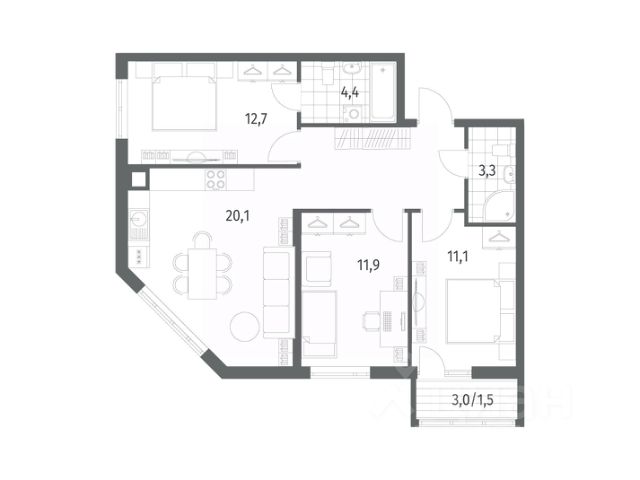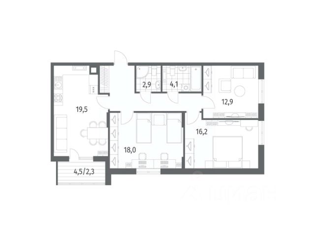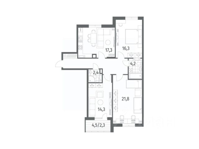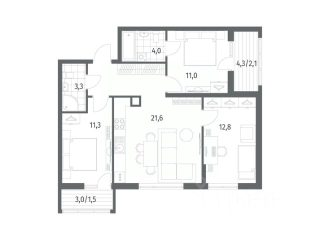 Трехкомнатная квартира - это просторное и светлое жилье, созданное для жизни без компромиссов. Три просторные изолированные комнаты позволяют каждому члену семьи иметь свое личное пространство: спальня, детская, кабинет или гостиная - все организуется легко и удобно. Благодаря увеличенному остеклению, интерьер наполняется естественным светом, визуально расширяется и создает ощущение легкости и открытости. Лоджия не только дополняет квартиру практичной зоной для хранения или отдыха.