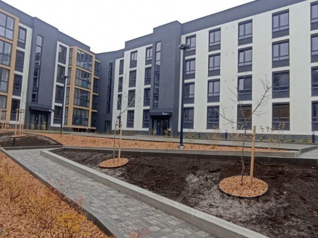 • Во дворе ЖК сохранены взрослые деревья, а территория благоустроена как парк с детскими площадками, беговой дорожкой и зонами отдыха.